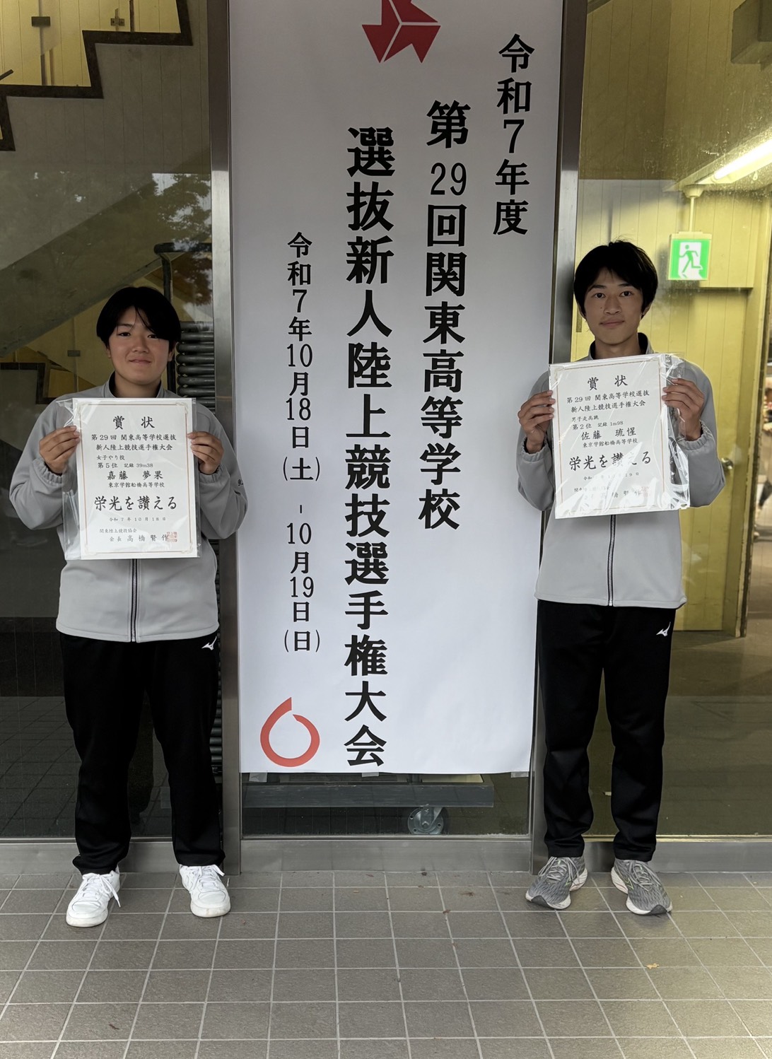 2025年10月31日(金) 未分類 陸上競技部 ~関東新人大会・U18陸上競技大会結果報告~ こんにちは!陸上競技部です。 いつも応援ありがとうございます。 関東新人大会、U18陸上競技大会の結果です。 ~関東新人大会~ 【走高跳】2位 佐藤琉惺⑴ 【やり投げ】5位 嘉藤夢果⑴ ~U18陸上競技大会~ 【砲丸投】8位 田中実生⑵ 次にに向けて、着実に成長できるように頑張ります!