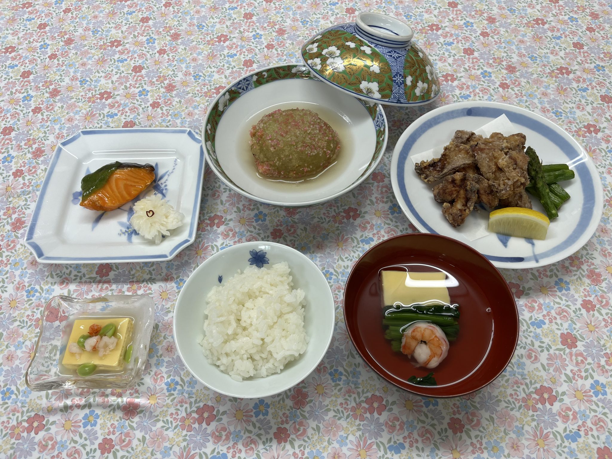 2025年05月02日(金) 食物調理科 令和7年度4月3年生調理実習 4月25日 3年生になり揚げる、蒸す、焼くなど1度の実習で行う調理操作が増え苦戦していましたが、限られたガス台を班員と声を掛け合い効率よく使いながら、実習を行っていました。 <メニュー> 卵豆腐のそぼろあんかけ 空豆饅頭 鮭の織部焼き 鶏肉の竜田揚げ 吸い物 ご飯