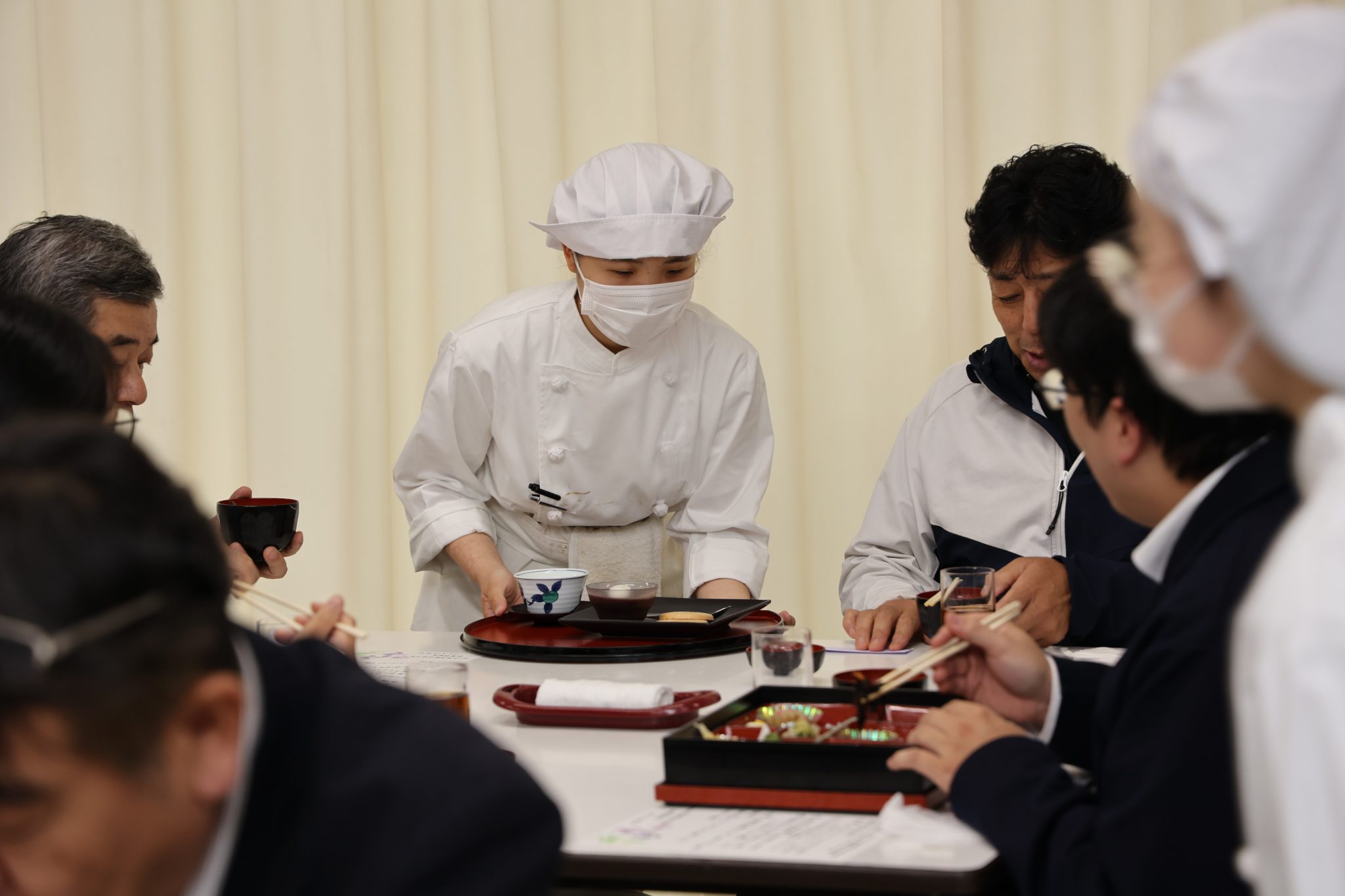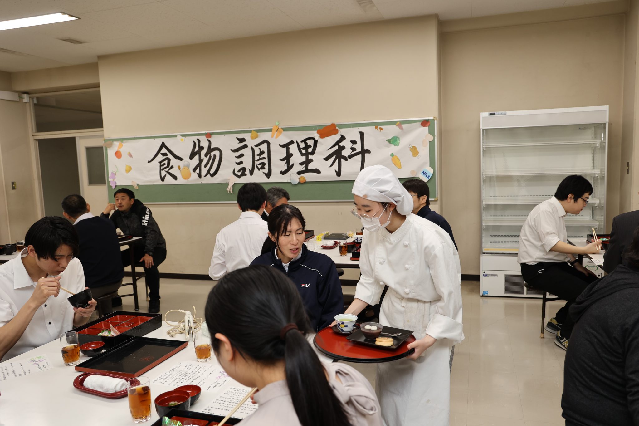 たくさんの先生方がお客様として来てくださったことで、普段の調理実習で行っている調理・盛り付けだけでなく、サービスや料理の説明なども行え、より実践的な内容になりました。