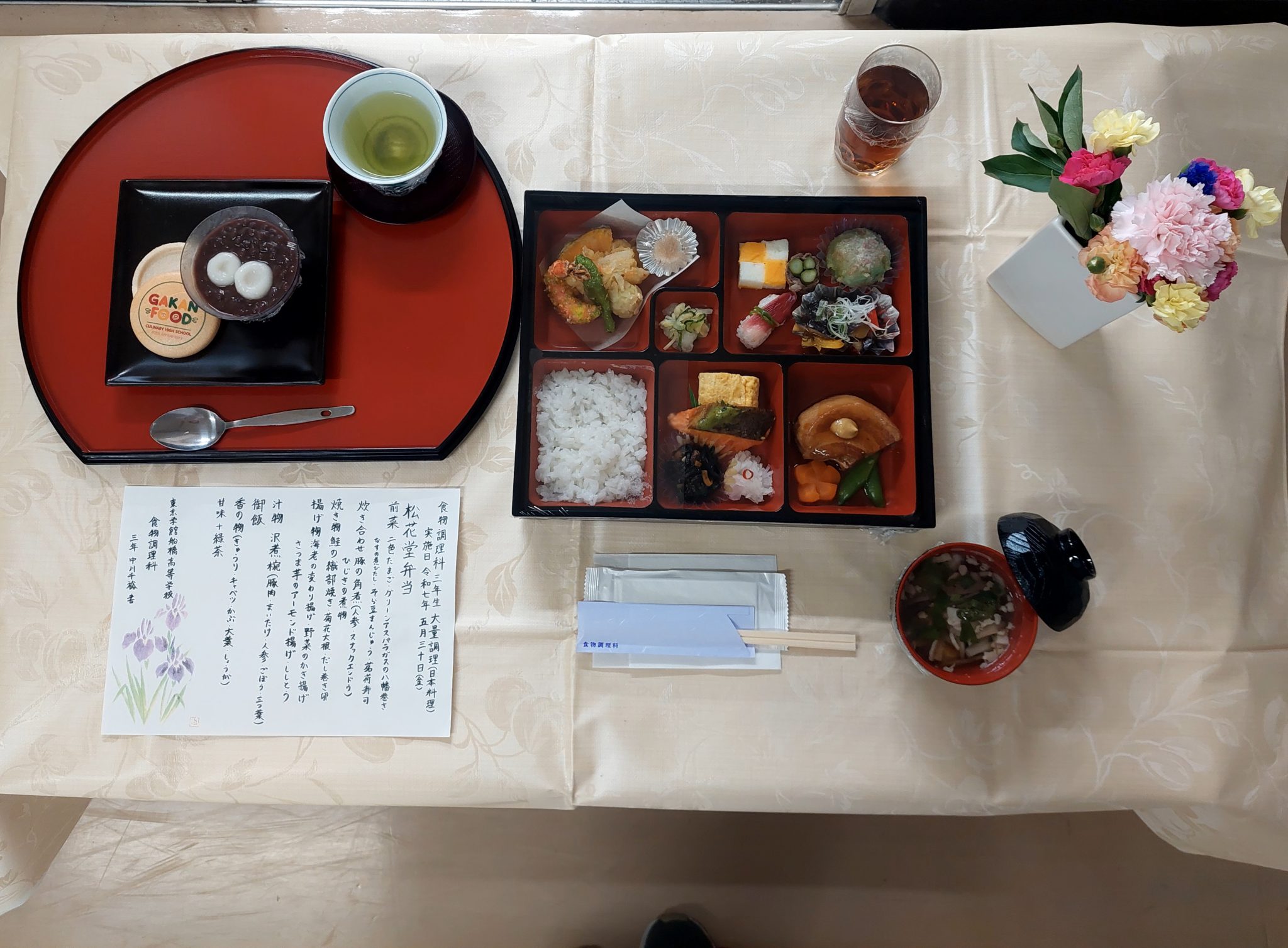 3年生になり初めての大量調理で、松花堂弁当に挑戦しました。