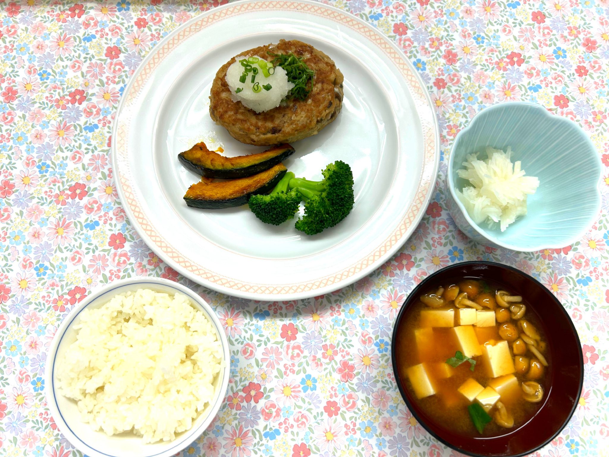 ※訂正 ハンバーグの皿が上下逆に写っています。