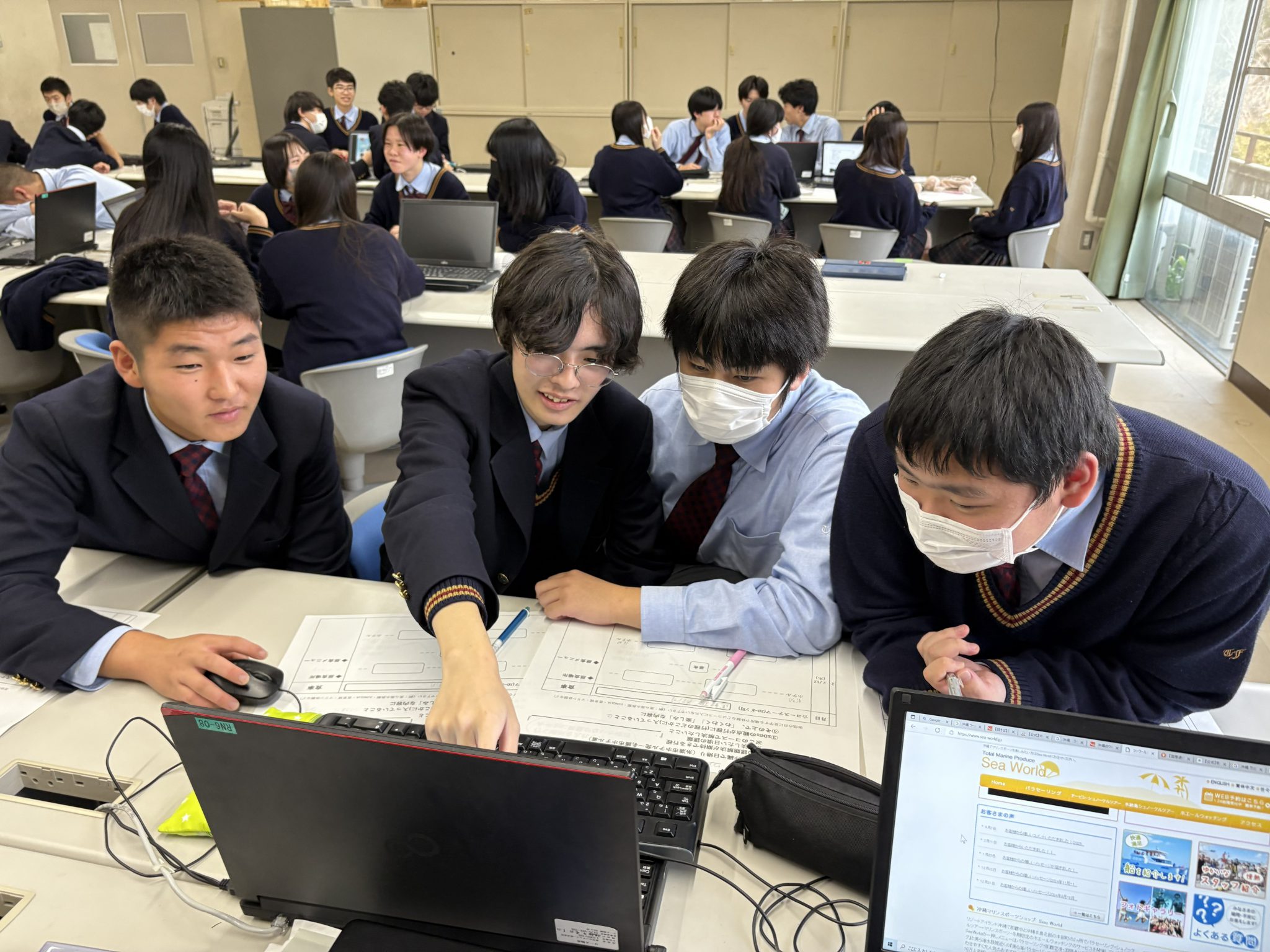 行程表の作成は沖縄の観光スポットや昼食メニューなど、キーワードとなるものを探して調べ、課題を解決できるようなプランになるように、試行錯誤しながら協力して作成する姿が見られました。