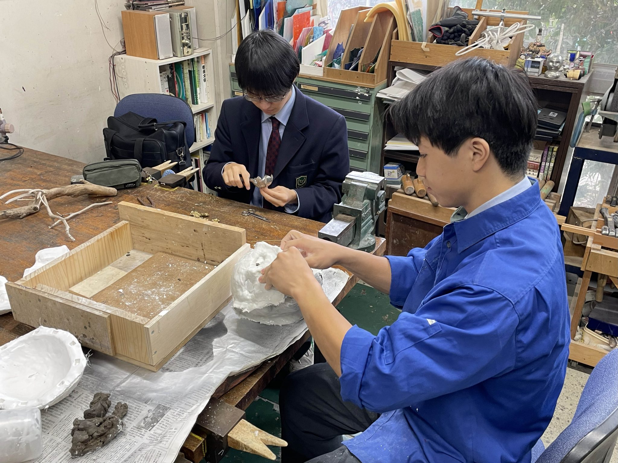 これも金工班。手前はシリコンの型をはずしているところでしょうか。
