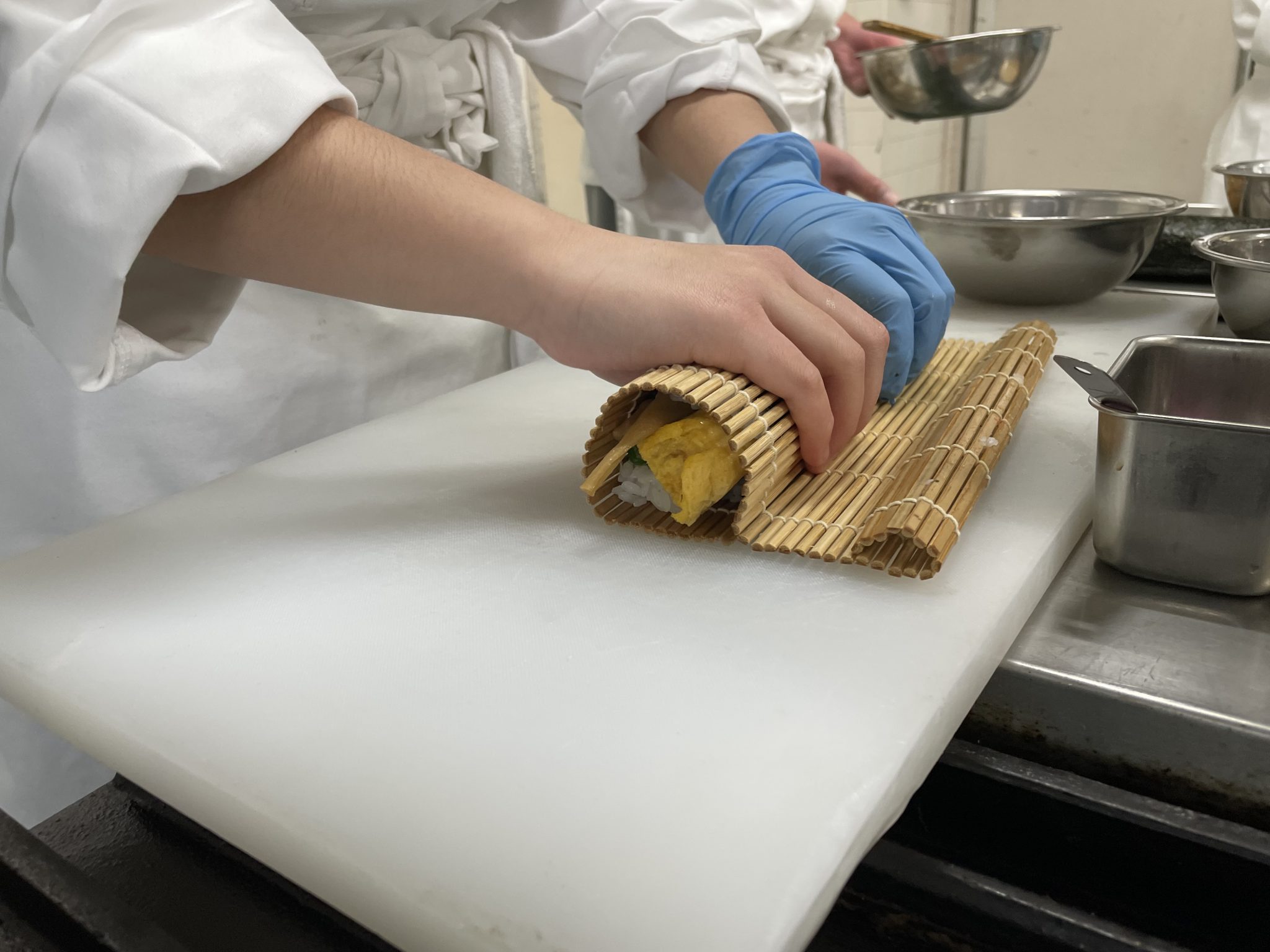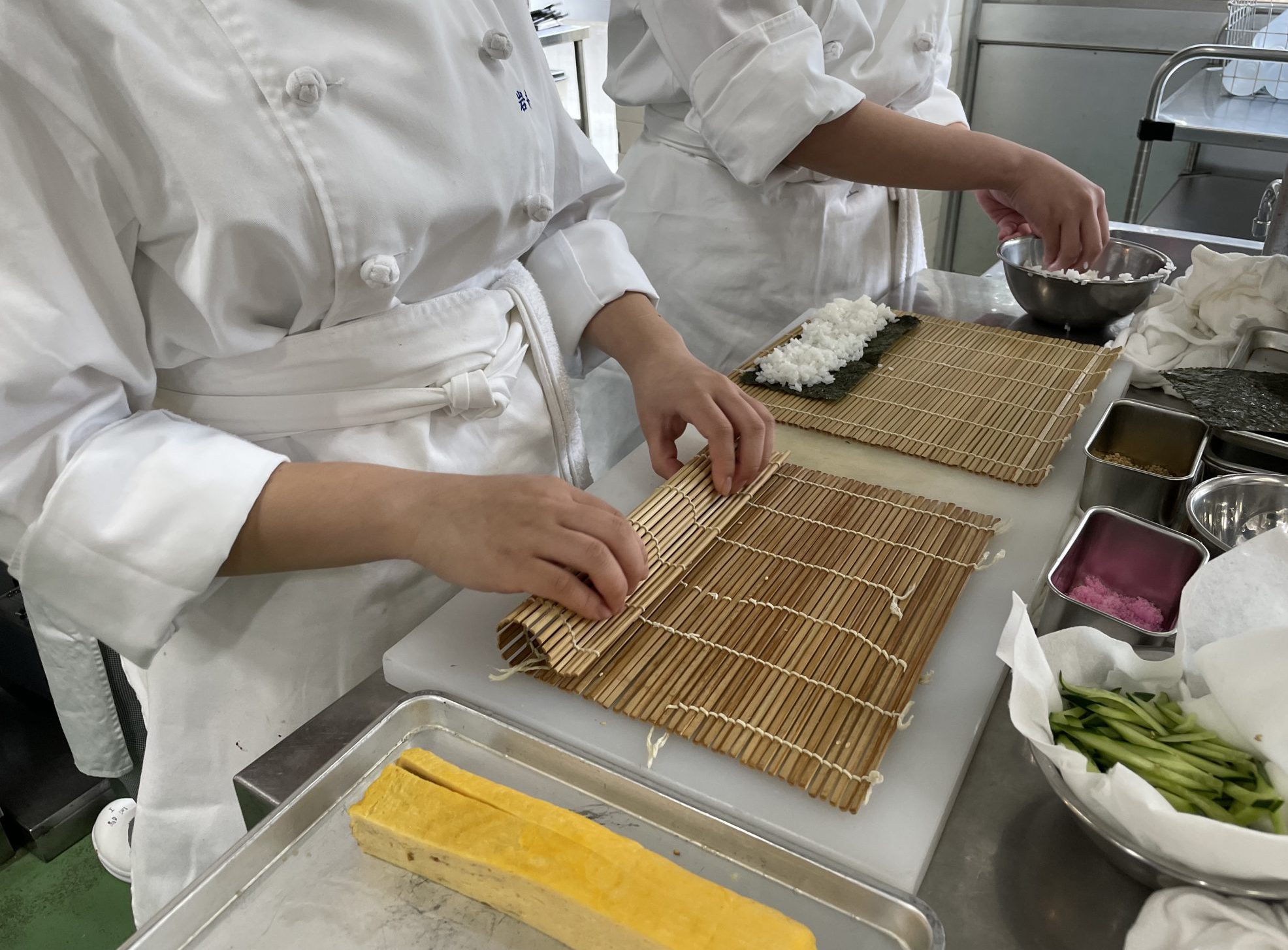 2026年03月24日(火) 食物調理科 令和7年度3月1年生調理実習 3月4日 本日のテーマは巻き寿司です。かんぴょうや油揚げを煮て、だし巻き玉子を切り、具材を用意します。各自巻きすを使用して慎重に寿司を巻いていきます。飯台や巻きすなど、使用頻度の低い調理道具の扱いも学ぶことができました。 上手く巻けた巻き寿司やいなり寿司を笑顔で誇らしげに見せてくれる姿が可愛らしかったです。 <メニュー> 太巻き寿司 細巻き寿司(かっぱ巻き・かんぴょう巻) いなり寿司