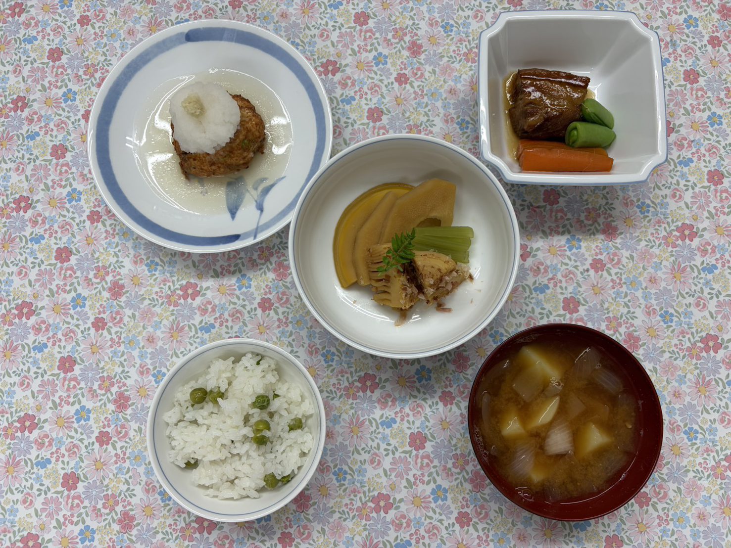 2026年04月24日(金) 食物調理科 令和8年度4月 2年生調理実習 4月21日 ~メニュ―~ ・たけのこの土佐煮 ・ふきの青煮 ・豚の角煮 ・がんもどき ・グリンピースご飯 ・みそ汁 先週に引き続き、たけのこを使ったレシピでした。扱い方にも慣れてきてる様子でした。 ふきは普段食べる機会が少ないからなのか「不思議な味だった」という感想が多くありました。 先週から品数や調理工程が増え、戸惑ってる様子も見られますが、少しずつ慣れていくことが大事です。分からないことはすぐに聞くことができるようにメモをたくさん取りましょう!