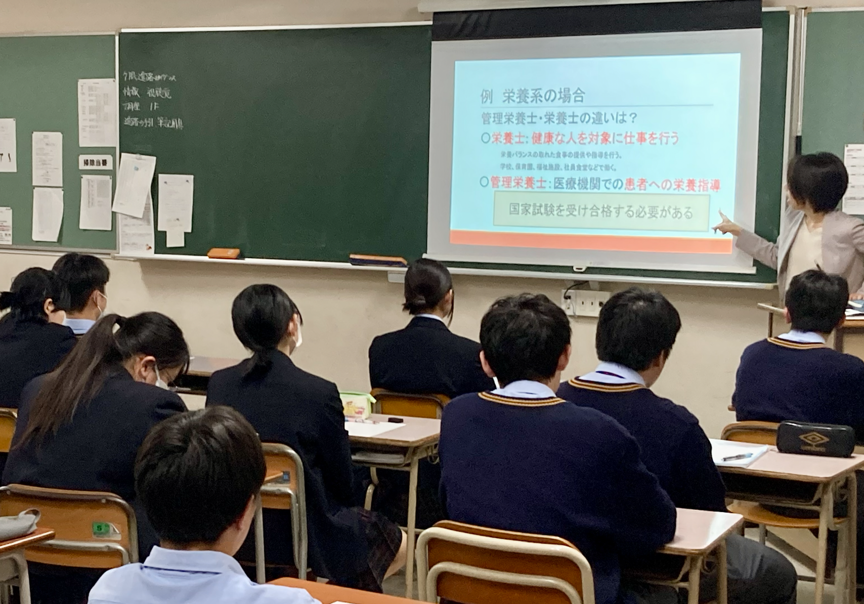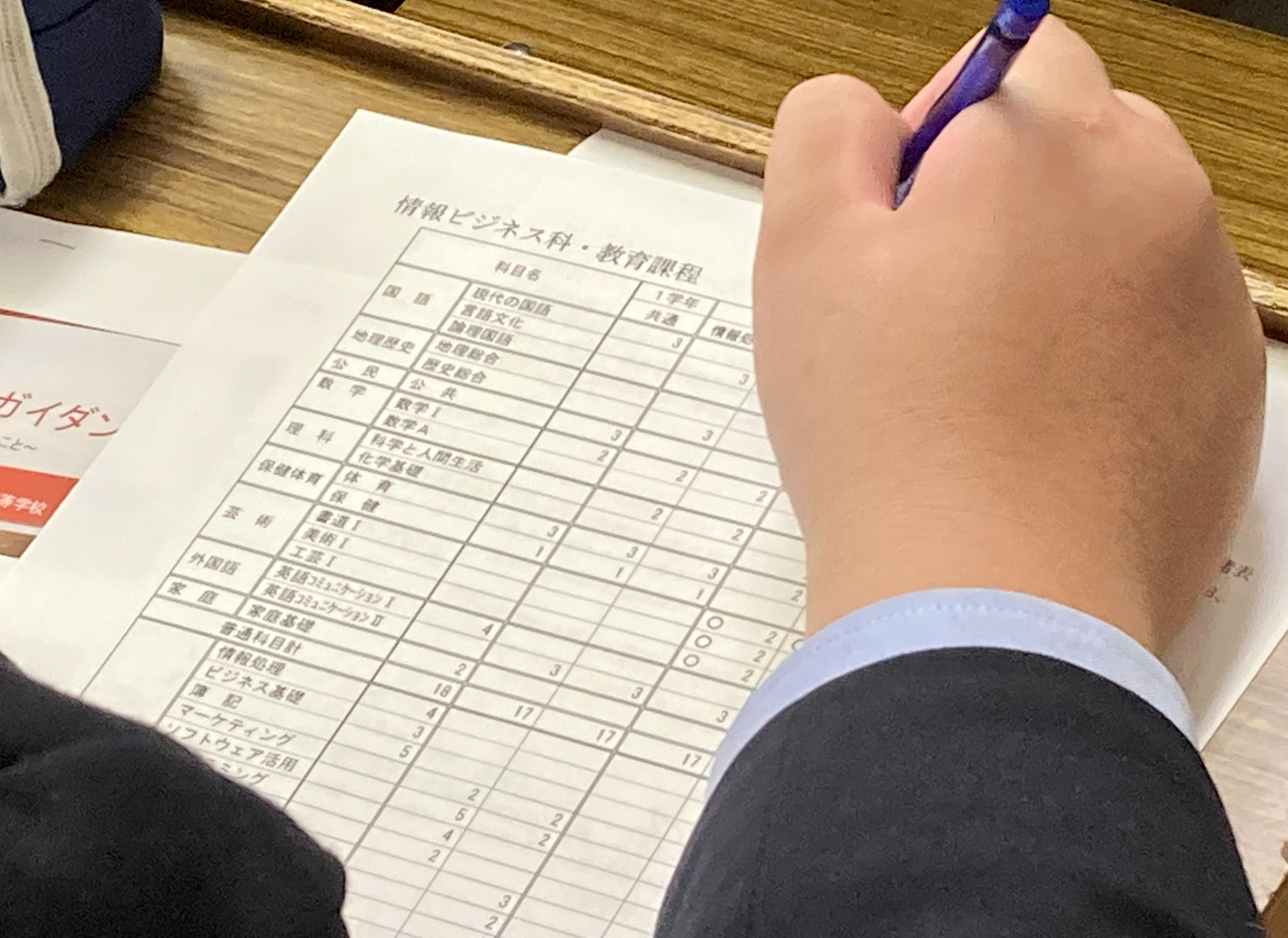 今年は、各学科(普通科、情報ビジネス科、食物調理科、美術工芸科)に分かれて、学科ごとの特性に合わせたガイダンスを実施しました