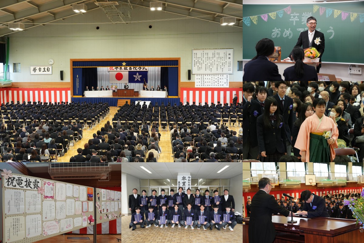2026年03月09日(月) 学校全体 令和7年度卒業式 3月3日、第38回卒業証書授与式が本校で行われました。卒業生たちは保護者、先生方の温かい拍手に見送られながら学び舎を巣立っていきました。仲間と過ごした日々や学校での思い出を胸に、それぞれの新しい一歩を踏み出します。卒業生の皆さんのこれからの活躍を、心より願っています。