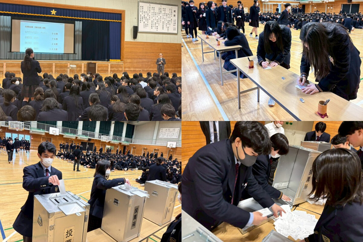2026年03月18日(水) 学校全体 特別講座~政治と選挙~ 3月16日(月)に読売新聞社協力のもと「政治と選挙」というテーマで2年生対象の特別講座が行われました。 読売新聞教育ネットワーク事務局の方に講話していただき、「政治と選挙」を学びました。 その後、実際に候補者役や事務局役を設定し、模擬選挙も行いました。生徒たちは初めての選挙を行い、将来に役立ててくれると思います。